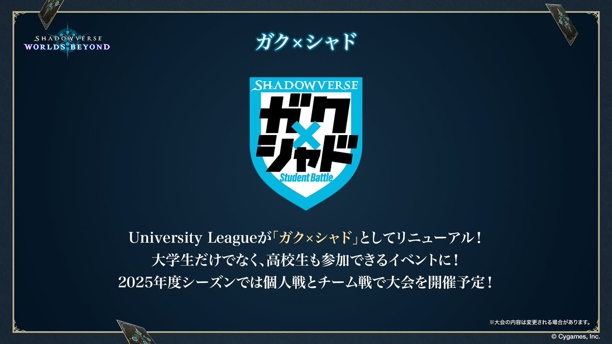 3·î23Æü¡ÊÆü¡Ë¡¢¥Ù¥ë¥µ¡¼¥ë½©ÍÕ¸¶¤Ë¤Æ¡¢¡ÖShadowverse: Worlds Beyond¡×¤ÎÀè¹ÔÂθ³¤È¹ç¤ï¤»¤Æ¡ÖShadowverse ºÇ¶¯¥Á¡¼¥à·èÄêÀï powered by RAGE¡×¡ÖShadowverse University League¡×¤Î·è¾¡Âç²ñ¤òƱ»þ³«ºÅ¤¤¤¿¤·¤Þ¤¹¡£¾ÜºÙ¡§https://fes.shadowverse-wb.com/