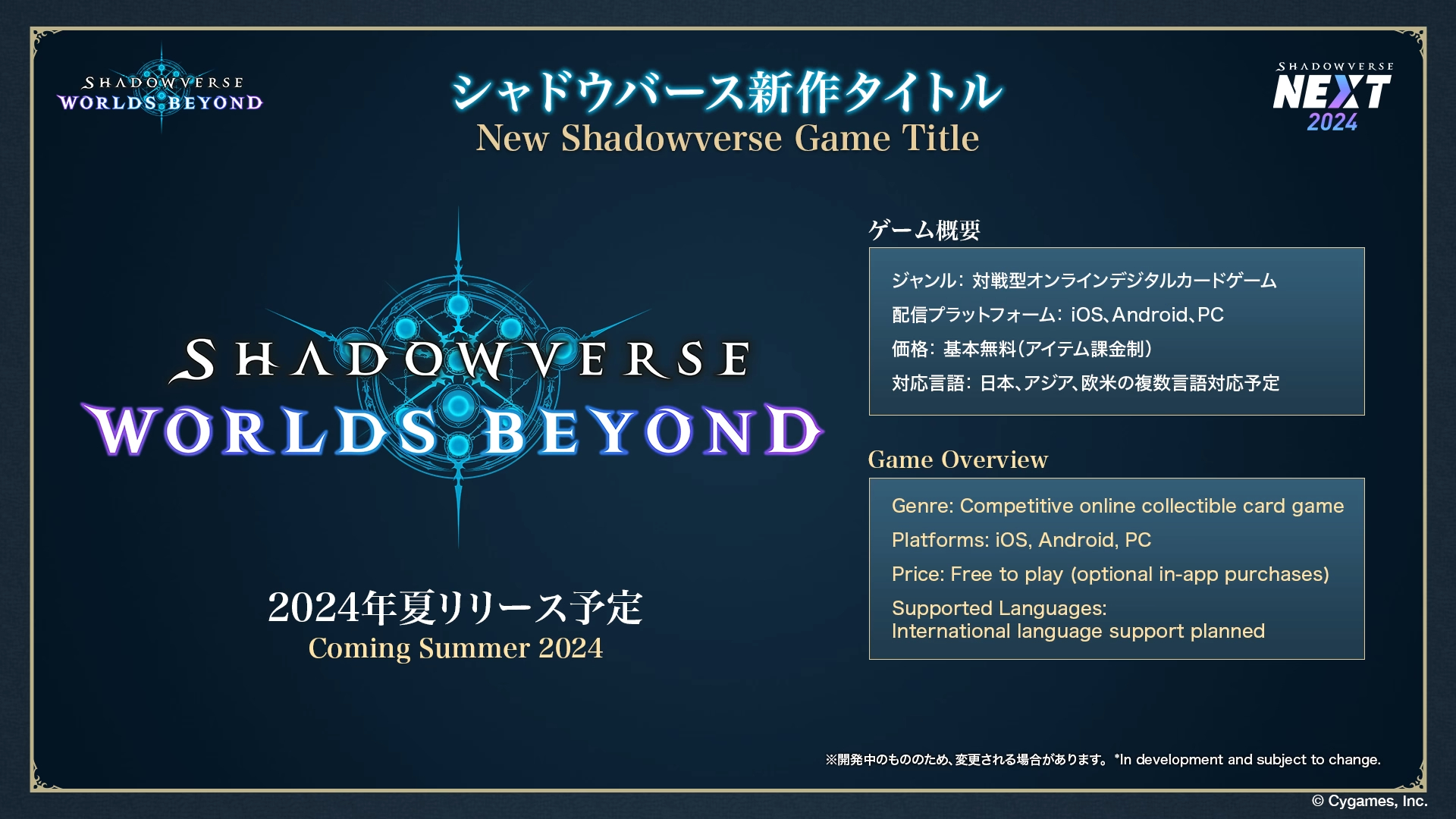 °ÊÁ°ÇÛ¿®¤·¤¿¡ÖShadowverse NEXT 2024¡×¤ÎÃæ¤Ç¡¢¿·¤¿¤Ê¹ñºÝÂç²ñ¤Ç¤¢¤ë¡ÖShadowverse World Championship¡×¤Î³µÍפˤĤ¤¤Æ¤ªÅÁ¤¨¤·¤Æ¤ª¤ê¤Þ¤·¤¿¡£1²¯±ß¤ÎWGP¤¬Éü³è¡£